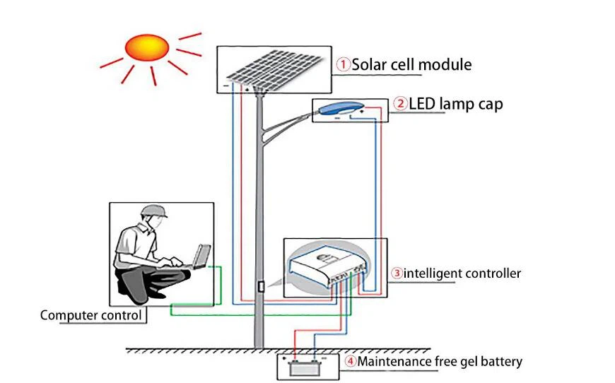 4. When the output line of the battery is connected with the controller in the electric pole, it must pass through the PVC threading pipe;